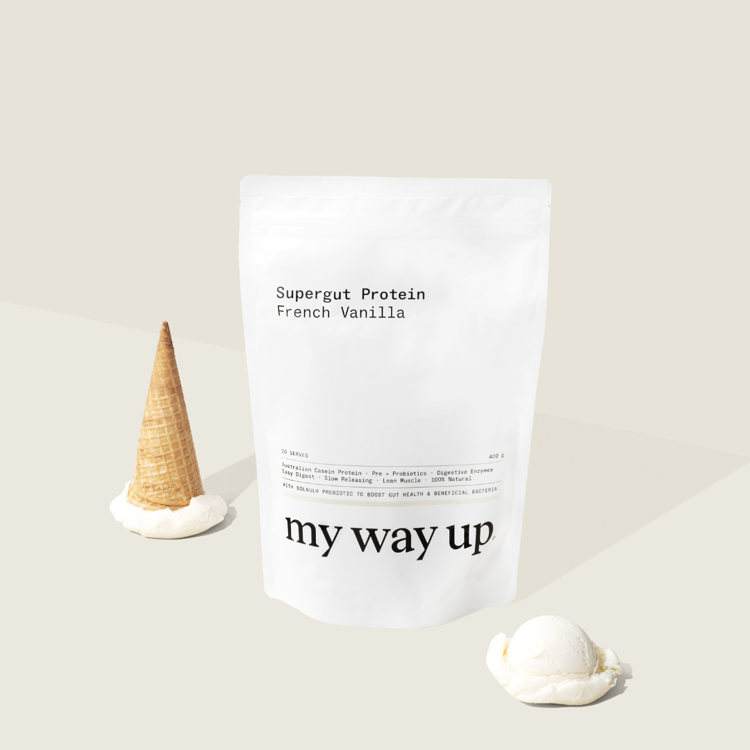 - 2 heaped tbsp French Vanilla Supergut Protein