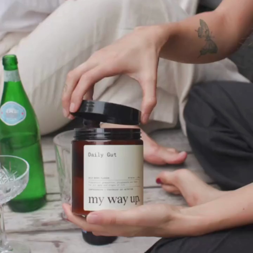 Daily Gut is an all-in-one, one scoop a day habit designed to give your gut the ingredients it loves that help it to function well and be healthy (like Lactospore® probiotic, prebiotics, polyphenols, fibre and amino acids).