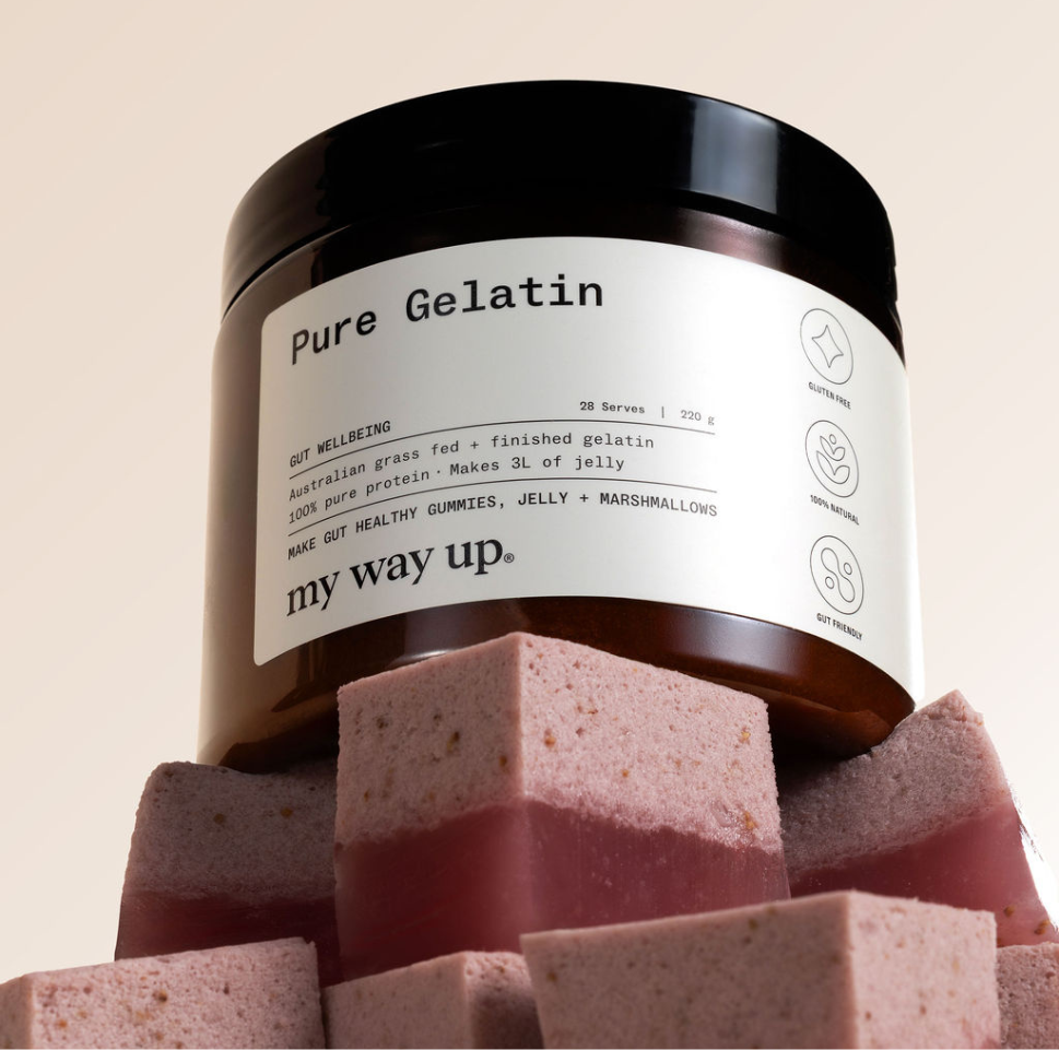 Pure Gelatin is a gut-loving protein source derived from collagen, packed with amino acids that support tissues building and repair.