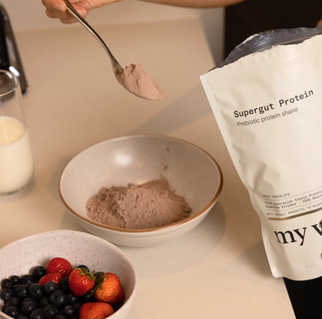 For a high-protein dessert, mix 38.5 g (3 to 4 heaped tbsp) with 100ml of your favourite milk & stir well and Supergut will turn into a creamy custard.